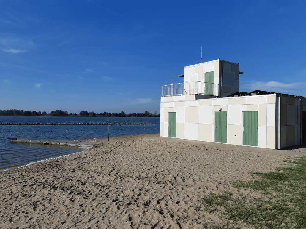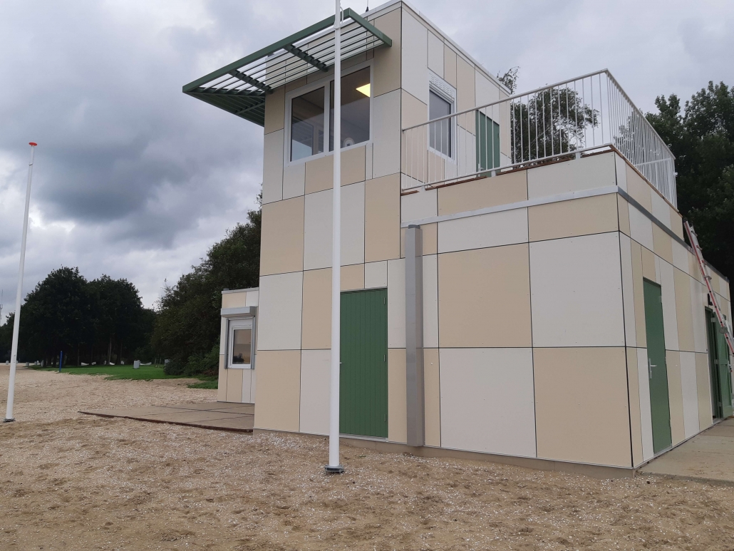 Vervangen van de bestaande strandwachtpost. Binnen 6 weken is er een nieuwe post opgebouwd, bestaande uit 6 gerenoveerde units met betonvloeren.
